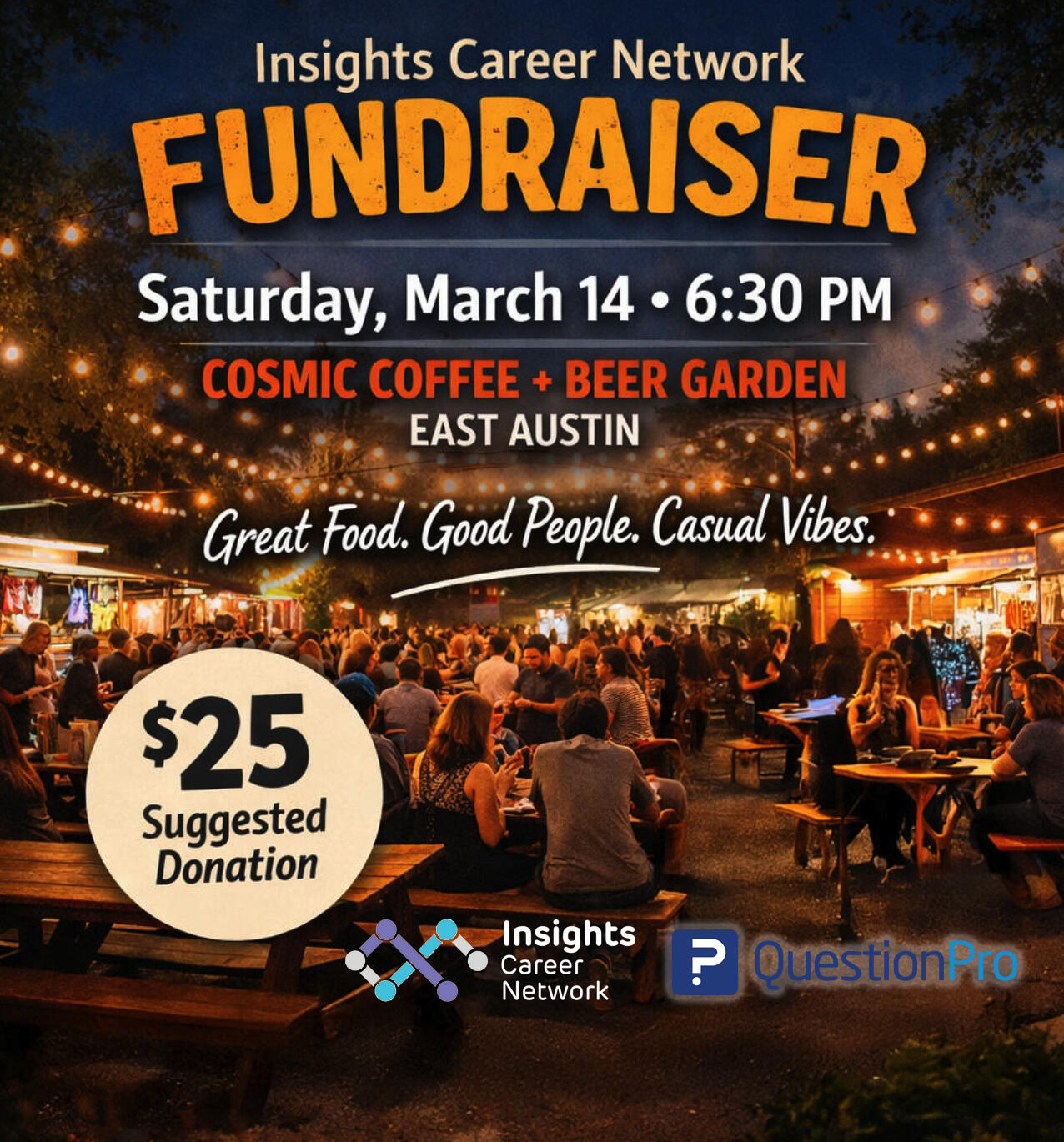 An open-air SXSW gathering at Cosmic Coffee + Beer Garden.Community tables, food trucks, and easy conversation in a laid-back East Austin setting. No programming - just a good Austin night with purpose.Proceeds support researchers navigating career transitions and staying connected to the industry.๐ Cosmic Coffee + Beer Garden East Austin